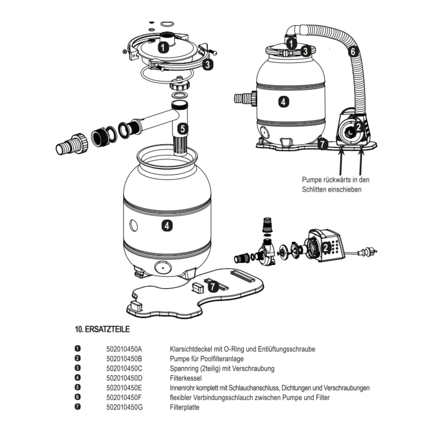 Klarsichtdeckel mit O-Ring und Entlüftungsschraube für Summer Fun Poolfilter BestClean (Artikelnummer 502010450)