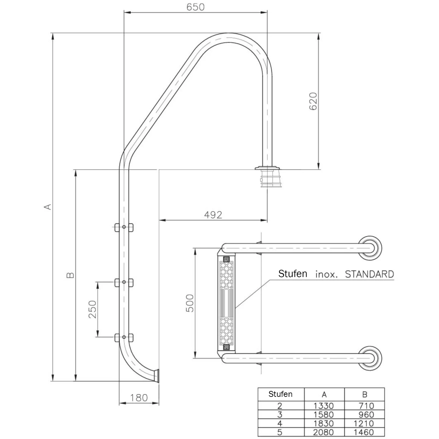 - Pool-Edelstahlleiter V2A mit 43 mm Holm