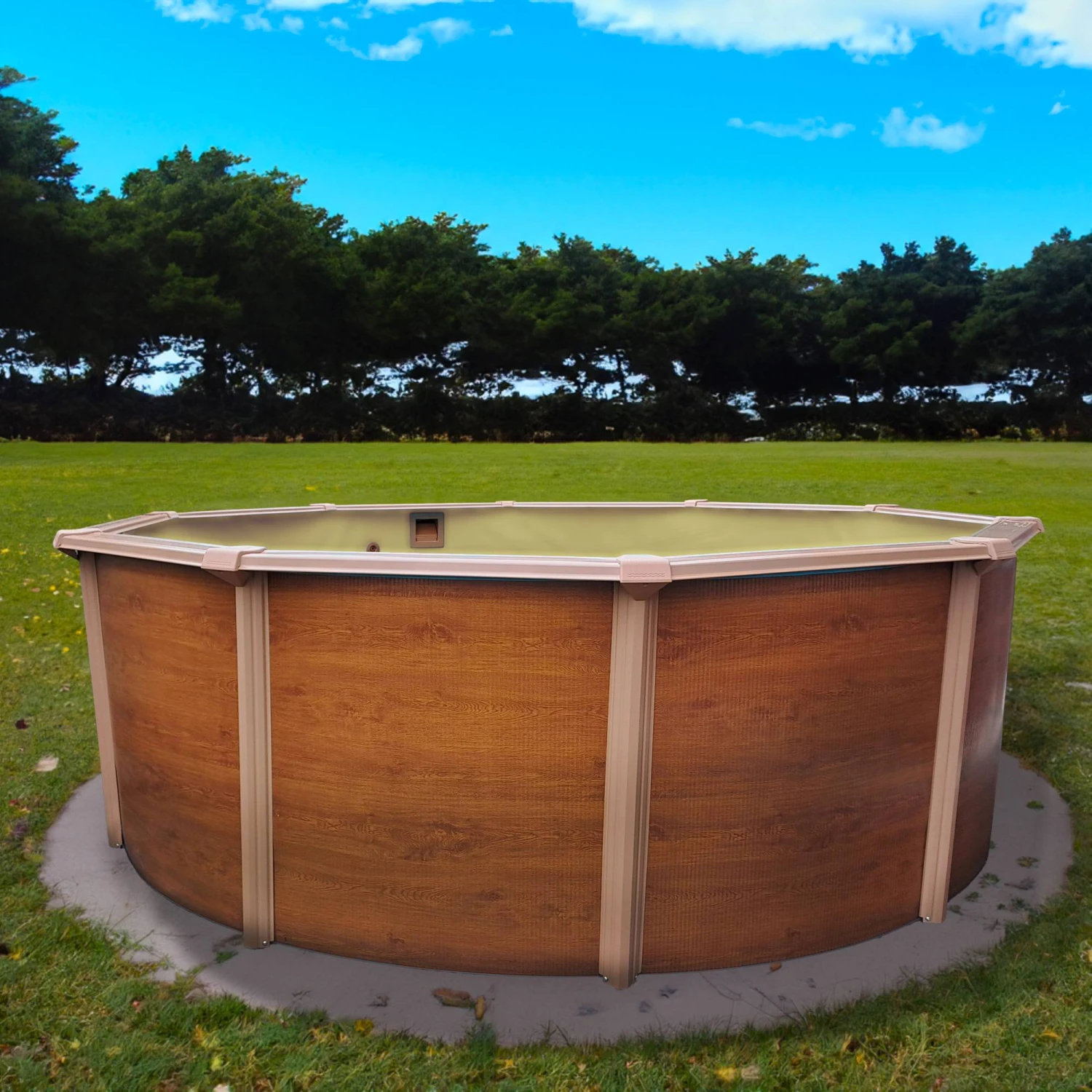 Waterman Stahlwandpool Rund 350×120 Cm, Stahl 0,4 Mm Holzoptik, Folie 0,3 Mm Sand, Overlap